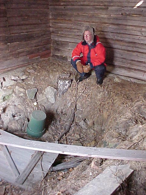 The food cellar of a house of unkown age. The foundation, that you can see under the logs that were timberd on it about 1960, also could be from the 19th century.